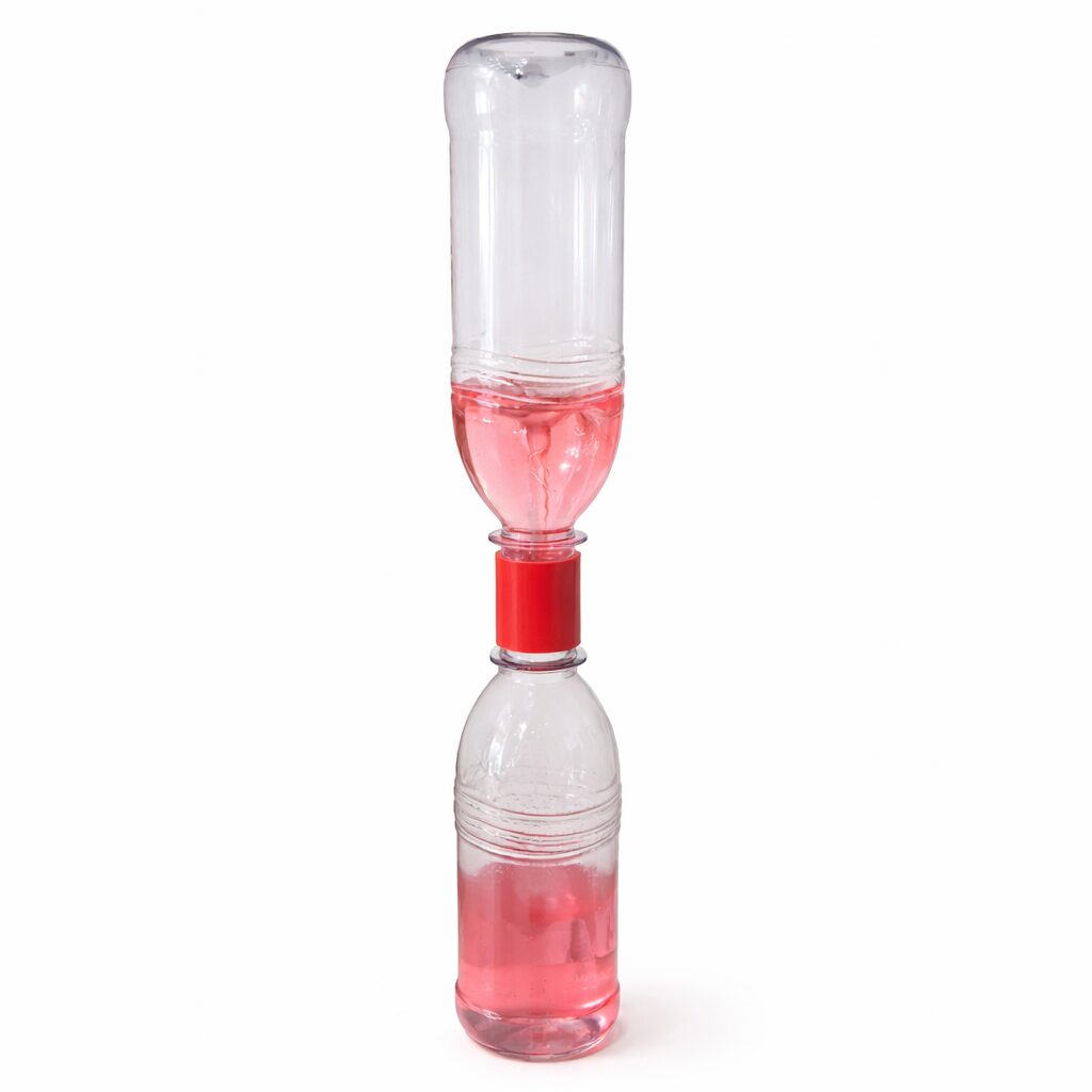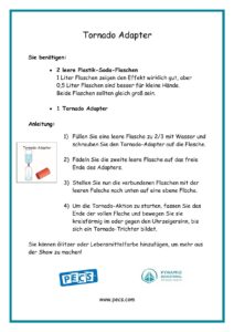 Verbindungsstück für zwei Flaschen. Damit lassen sich herrliche Wasserspiele erzeugen. Der Tornado-Adapter kommt mit Flauschpunkten und drei laminierten Bildern: "Ich möchte", "Tornado-Flasche" und "Tornado-Adapter". farblich sortiert.