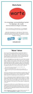 Die Warte-Karte (138*122mm) wird als Pfand verwendet, wenn der oder die SchülerIn für kurze Zeit auf einen Verstärker warten soll (siehe PECS Trainingshandbuch, S. 258). Auf der Rückseite ist eine Anleitung gedruckt. Die Karte besteht aus widerstandsfähigem Polyethylen.